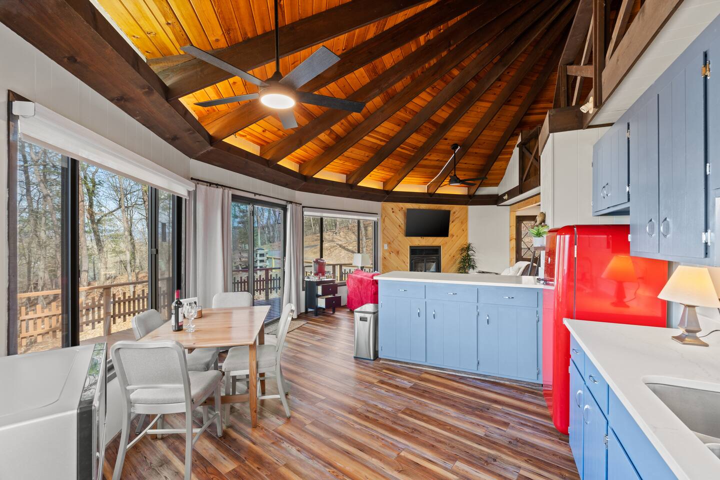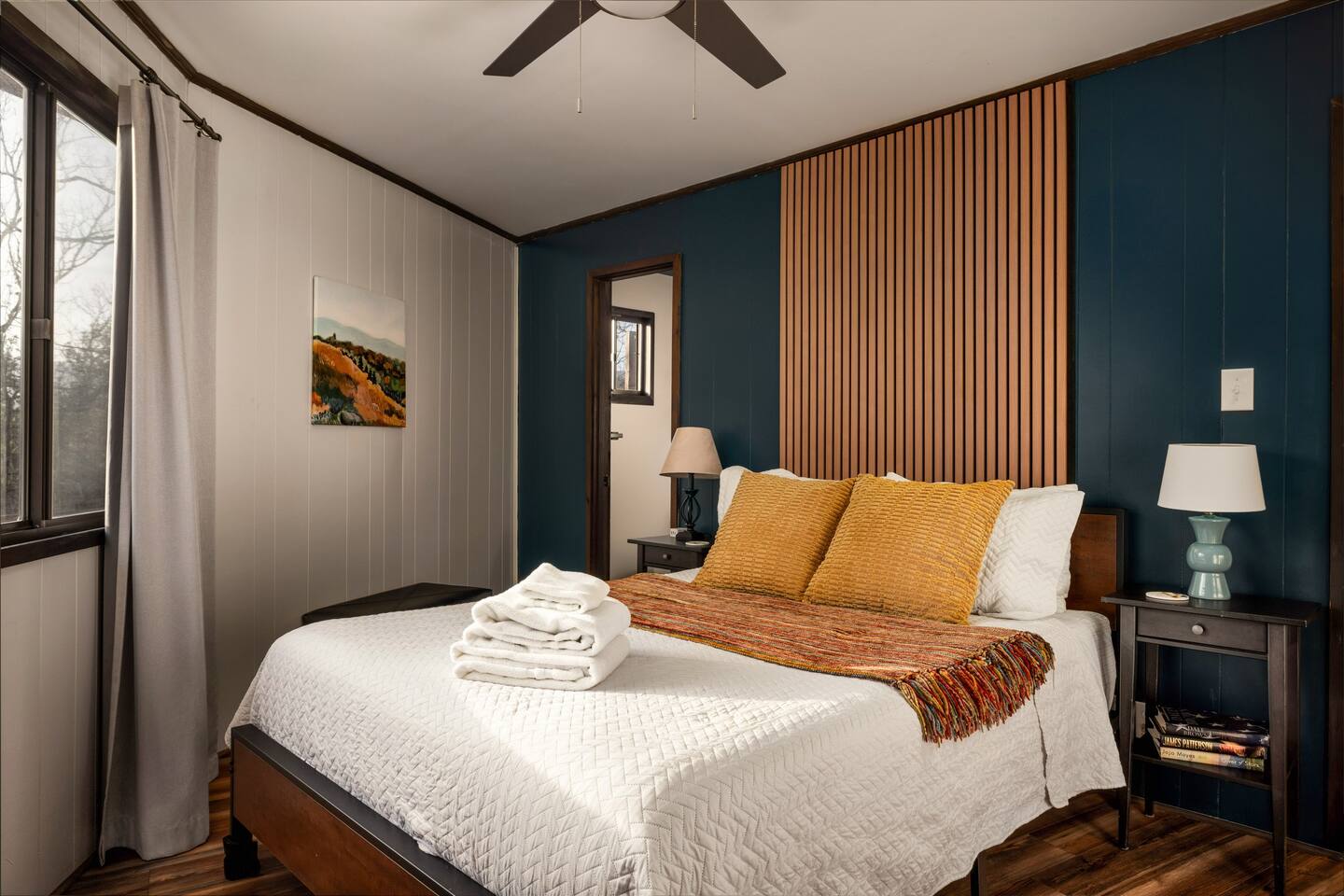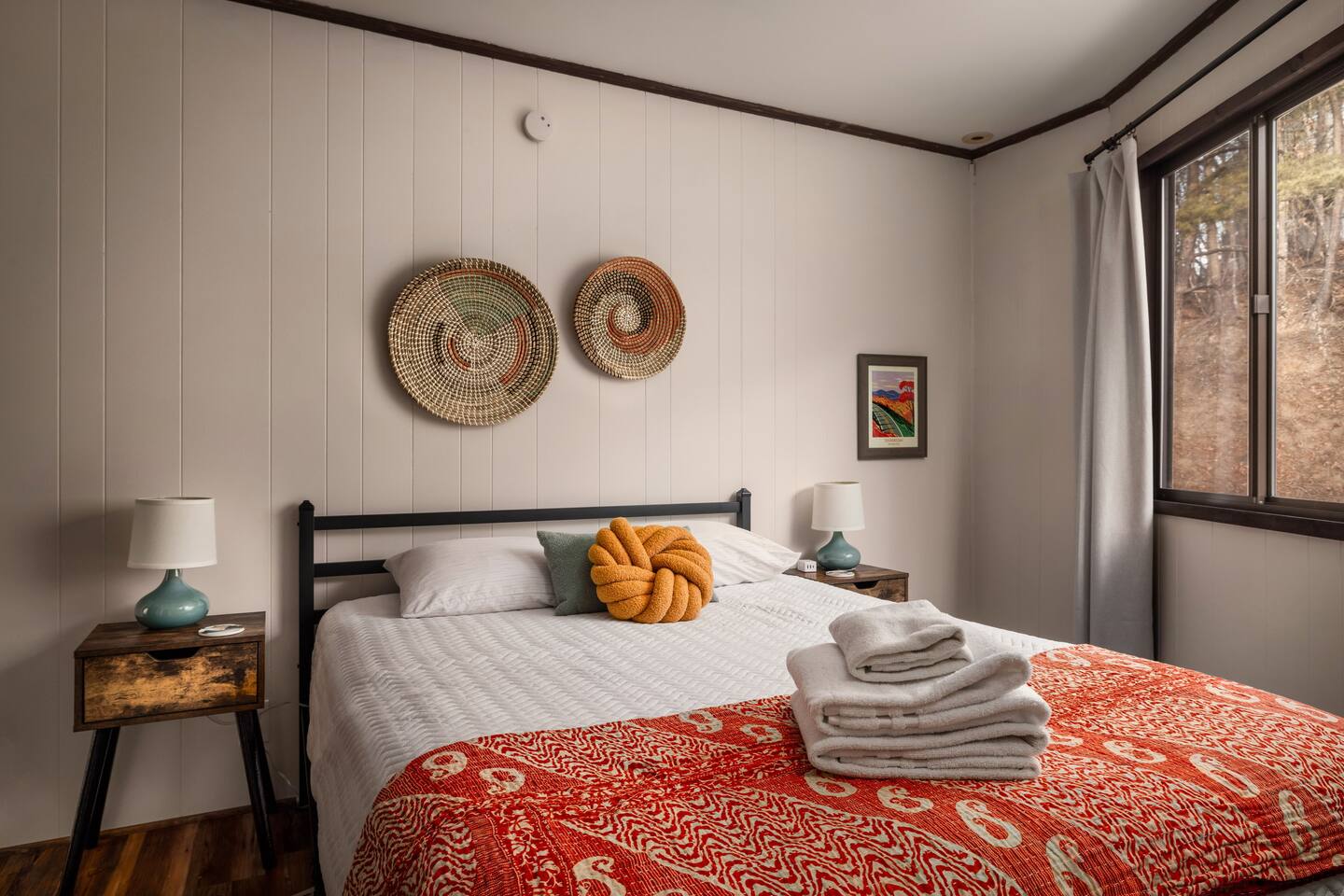 The open living space invites you to relax in comfortable seating, read provided books by popular authors, or enjoy shows on the 55” Smart TV. Gather around the kitchen table for shared meals, board games, or a quiet workspace. Main level living provides two bedrooms, full bath w/tub and a convenient half bath in the main bedroom. A loft with two twin beds accessed by a ladder adds a touch of adventure to your stay that kids love! The well-equipped kitchen will make cooking a breeze. We even have seasonal fresh herbs you can pick from the garden for your culinary creation. LIVING ROOM * Seating for 6 * 55” Smart TV with access to your favorite apps * Board games, cards and books * Sofa throws * Note that fireplace is not in working order BEDROOMS * Queen beds * Half bathroom (main bedroom) * 32” Smart TVs * USB C charger cubes * Extra pillows and blankets * Cloths steamer * Ceiling fans LOFT * 2 twin beds * Children's books & toys * Cooling fan/tower * USB C charger cube CHILDREN * Pack ‘n Play w/sheets * Booster seat with food tray * Bib, silverware, dishes, sippy cups BATHROOMS * Shampoo - conditioner - body soap * Towels - hair turbans * Hair dryers KITCHEN * Silverware-dinnerware-glassware * Pots & pans-cookie sheets-pizza pan-casserole dishes-serving dishes * Toaster * Keurig + reusable pods for your own coffee brand * Mr. Coffee filter coffee pot + filters (bring your favorite blend) * Hot water kettle * Variety of coffees/teas/hot chocolate + Non dairy creamer & sweeteners * Waffle maker * Hand mixer - bowls * Blender * Commonly used spices - olive oil * Table w/seating for 6 (1 chair in bedroom closet) * No dishwasher - paper plates provided DECK * Gas fire-pit * 2 wool blankets * Wall Ring Toss Game * Seating for 6 * 6 turkish towels for Lake Laura swimming Please note the hosts' severe allergies that brings on asthma attacks prevents pet accommodations. Guest making reservation needs to be at least 24 yrs old and staying at the house. Please be sure to read the online manual for house rules before booking. Explore local attractions with recommendations from the Guide Book. Additionally, Mt. Jackson has a Food Lion, Woodstock has a WalMart and the local Community Store has items much like a 7-11. Here are some highlights to get you started: - Shenandoah Caverns - 15 miles - Kindred Pointe Winery - 12 miles - Shenandoah Winery - 17 miles - Wolf Gap Winery - 12 miles - Muse Vineyard - 21 miles - Swover Creek Farm & Brewery - 10 miles - Historic Orkney Springs - 3 miles - Hiking and bird watching everywhere! - Bryce Resort - 1 mile. Ski, snow tube, ice skate, golf, mountain bike, zip line - Lake Laura - 1 mile. Swim, fish, paddle board, canoe, 3 mile hike around lake - Luray Caverns - 31 miles - Seven Bends National Park - 22 miles - Shenandoah National Park main entrance - 42 miles