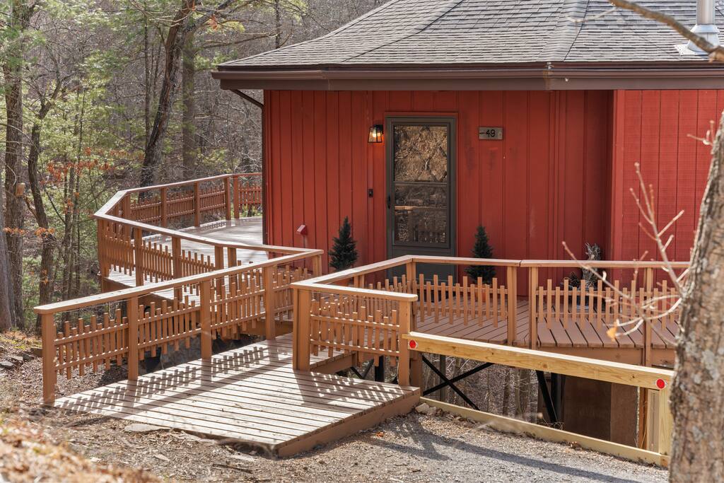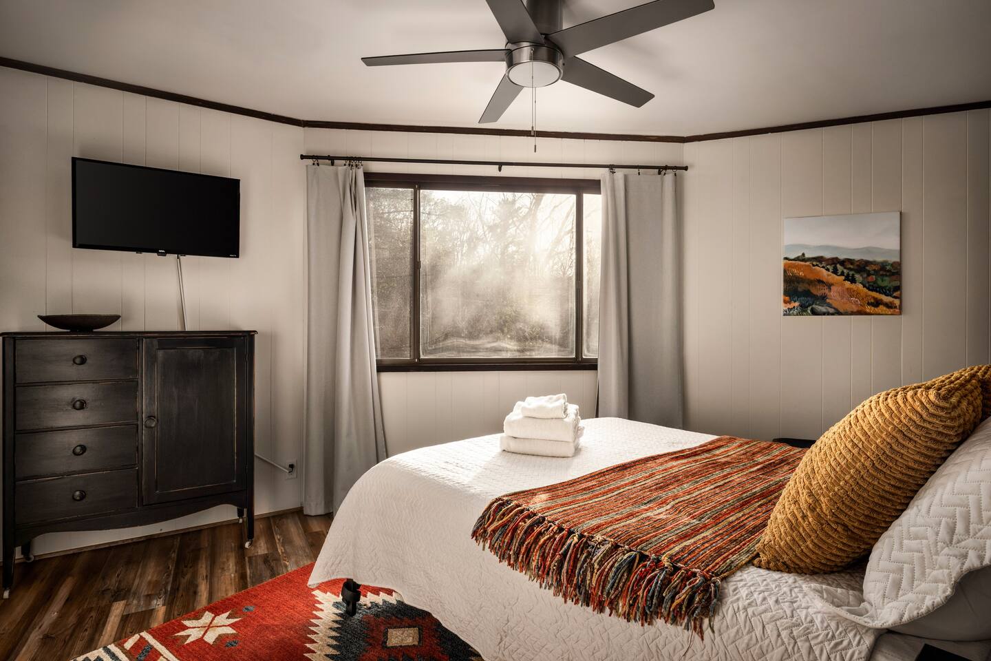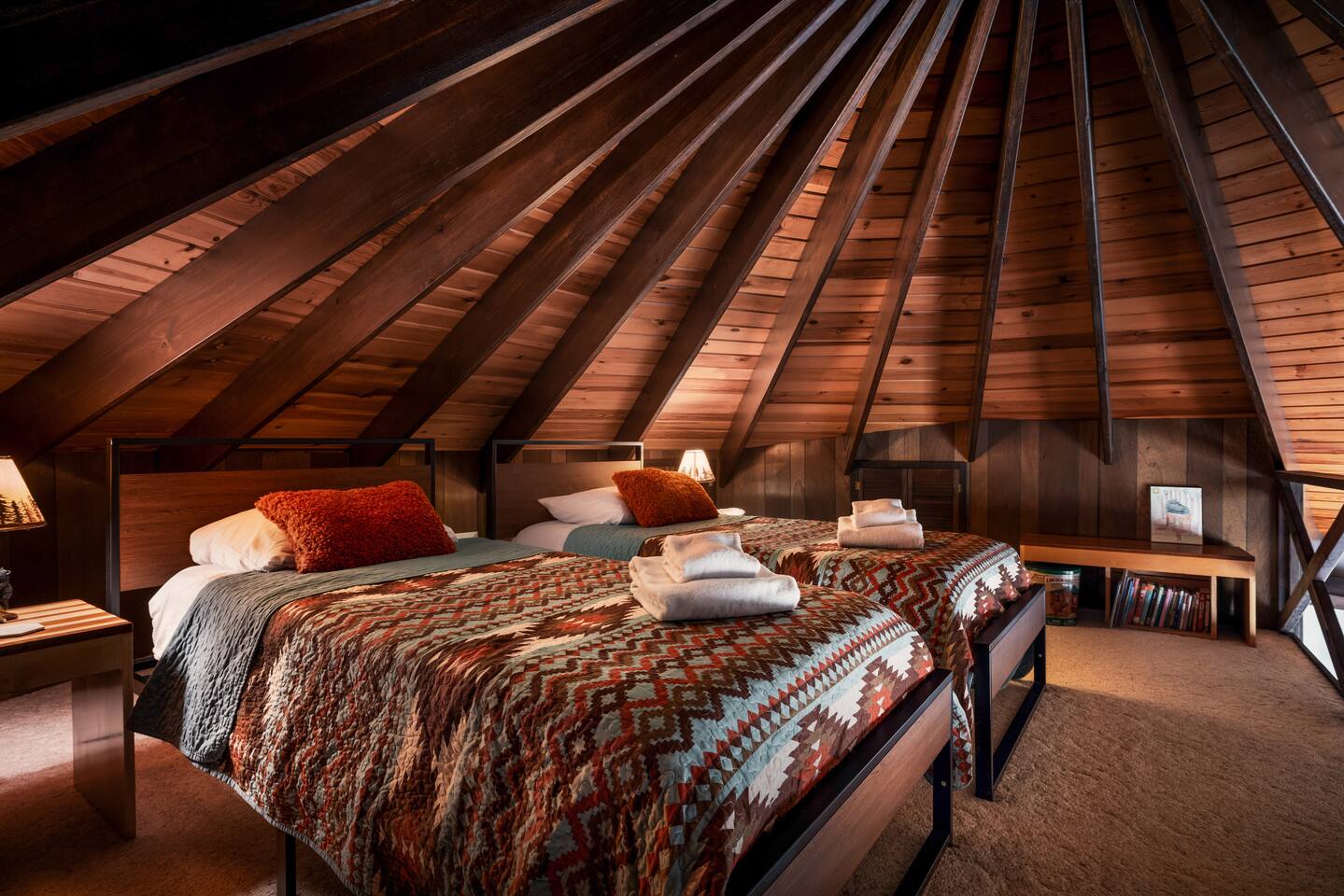 A 4 wheel drive vehicle is recommended for inclement or winter weather. You will be driving on two lane, winding mountain roads to get into Basye and Raccoon Rd. Please note that this unique treehouse setting has a steep grade and sits ~ 20 feet off the ground. The gravel driveway is a hard left turn into it. We recommend you drive pass the house, turn around in the cul de sac for a straight shot into the driveway. The third bedroom is a loft with 2 twin beds accessed by a ladder.