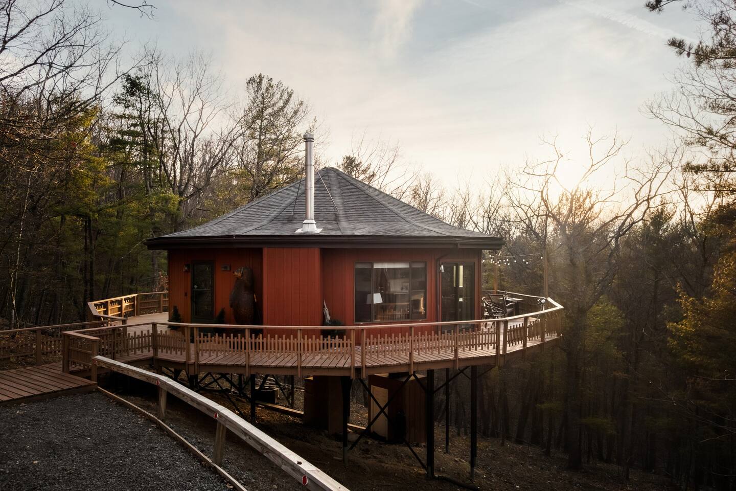 Escape to a unique yurt-shaped treehouse nestled in the serene woods of the Shenandoah Valley. 🚗1 mile to Bryce 4 Season Resort for Winter Sports 🌲Comfortable outdoor deck seating with 360 degree views & fire-pit 🪵 Soaring pine ceilings 🪟 Wall of windows that seamlessly connects the indoors with the outdoors. 🌌Star gazing through our telescope Be sure to book today as dates fill up quickly!
